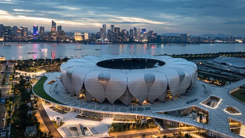 比賽場館是舉辦一場精彩賽事的前提,巨力索具參與建設的杭州奧體中心體育場(以下,簡稱“杭州奧體中心)是杭州亞運會開幕場館及重要比賽場館之一。主體的運動場館外形似蓮花,造型動感飄逸,由28片大花瓣和27片小花瓣組成。項目采用巨力索具高強度鋼拉桿和高釩索,增強花瓣面外穩定。該造型取意于杭州絲綢紋理與紡織體系,建筑體態源于錢塘江水的動態,擁有簡潔的花瓣單元,猶如一朵美麗的蓮花綻放于錢塘江畔。