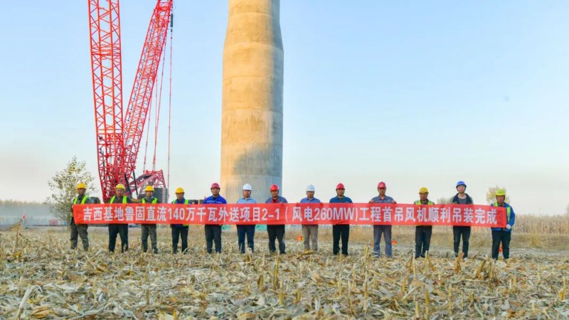 近日,中廣核吉林吉西基地魯固直流140萬千瓦外送項目2-1(風電場260MW)工程首吊風機完成吊裝。巨力索具60KNM盤車工裝和5MW單葉片吊具全程保障其順利吊裝。