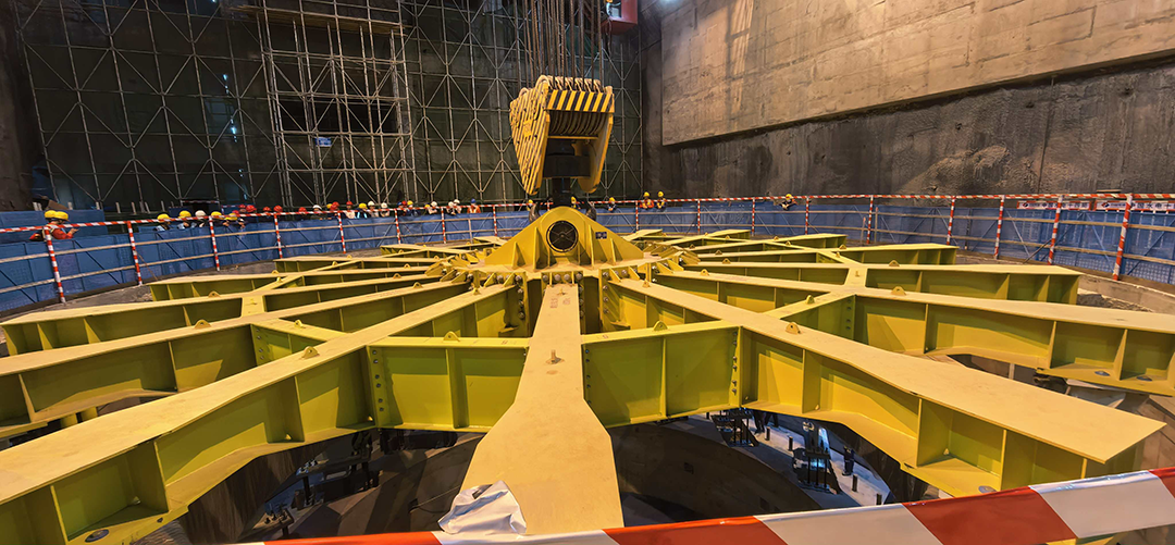 定子作為發電機組的重要核心部件,主要由機座、鐵芯和繞組三大部件組成。此次吊裝的定子外徑達16.4米,高5.6米,由22萬張0.5毫米厚的硅鋼片疊裝而成,總重量達544.3噸。