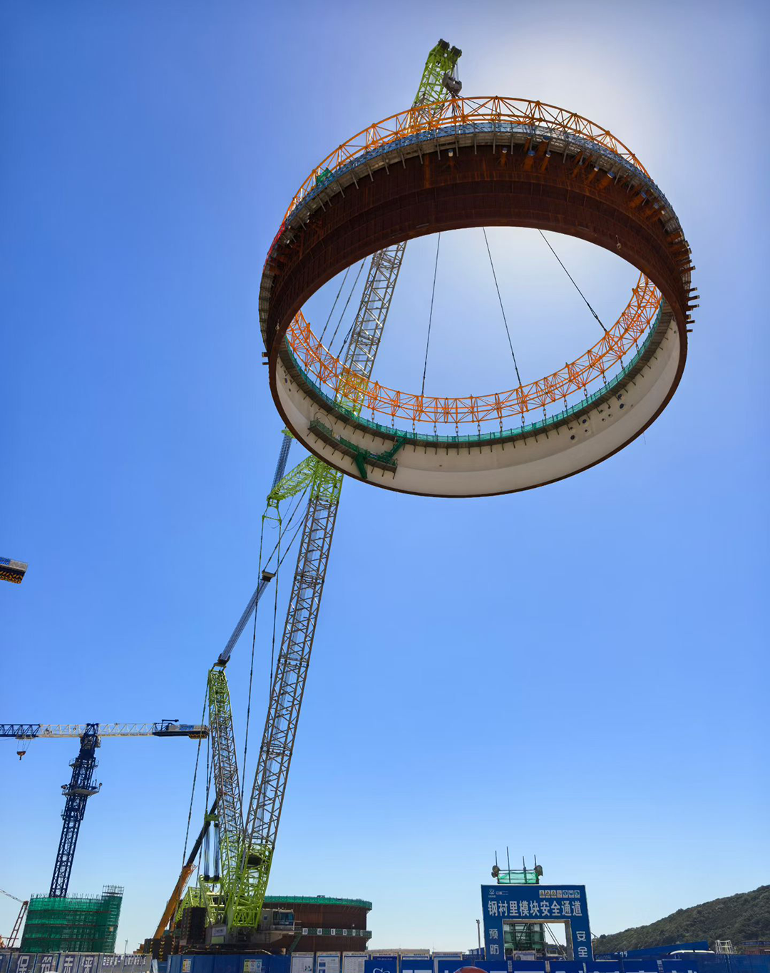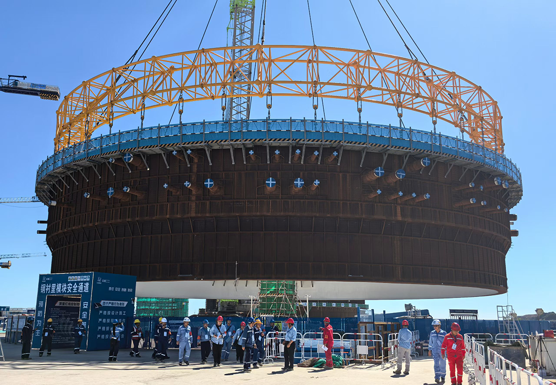 歷經4個小時的奮戰(zhàn),金七門核電1號機組鋼結構安全殼鋼襯里模塊一平穩(wěn)吊裝就位,為核島反應堆廠房內部結構和內外殼并行施工奠定了堅實基礎。