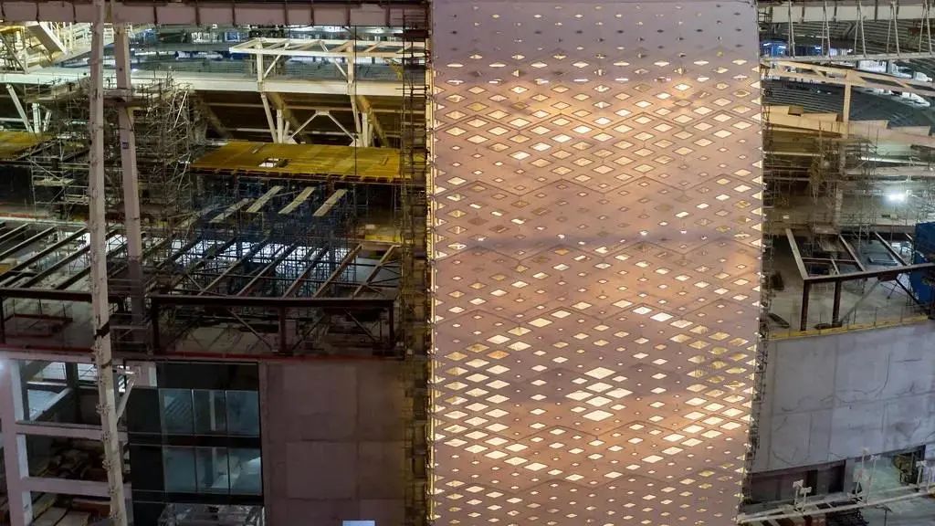 該球場是由卡塔爾建筑師Ibrahim M. Jaidah設(shè)計的,其設(shè)計靈感源自于阿拉伯男子佩戴的白色針織帽(Gahfiya),獨特的鏤空編織圖案極具阿拉伯特色,將阿拉伯當(dāng)?shù)仫L(fēng)情展現(xiàn)得淋漓盡致。