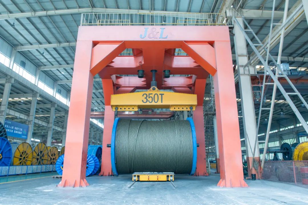 巨力索具為“秦航工2300”號提供起升、變幅、拋錨三大系統在內的全船鋼絲繩配套,包括本次超千噸級吊裝所用全套索具系列產品。其中為滿足“秦航工2300”號亞洲第一吊高的施工需求,船舶工程師設計了超高的2300噸吊機主臂架,使主變幅鋼絲繩長度必須滿足主臂架設計要求,巨力索具項目團隊根據設計方案結合生產工藝進行改造提升,最終實現單根鋼絲繩長度超過10730米,凈重達215噸成功交付使用,該鋼絲繩成功投入使用標志著我國鋼絲繩產業又向前邁出一步,既彰顯了巨力索具制造實力,也為我國在超長超重鋼絲繩領域發展畫上濃墨重彩的一筆。