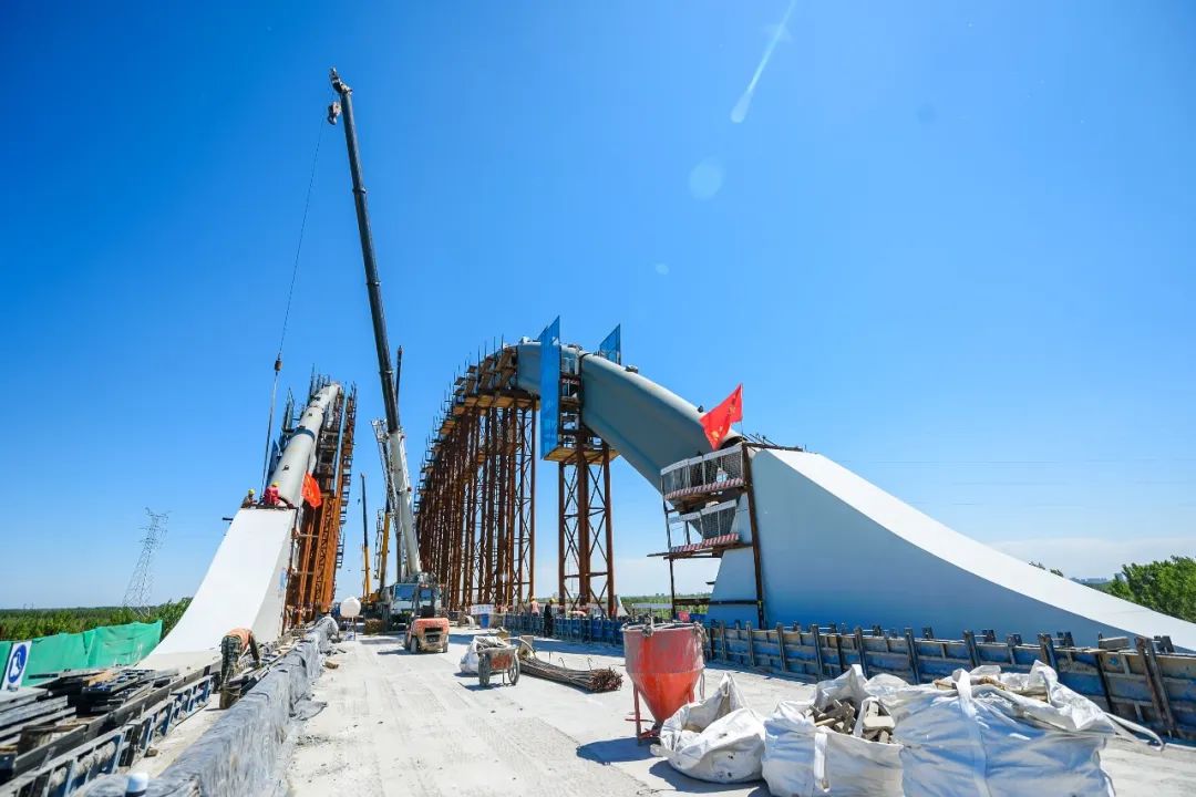 △ 京雄城際鐵路跨大廣高速系桿拱橋結(jié)構(gòu)施工