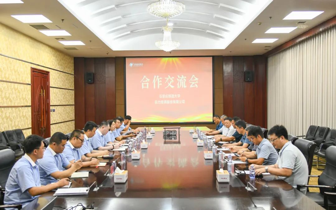 2023年7月4日,石家莊鐵道大學土木工程學院韓東海書記一行10人到訪巨力索具,雙方就產學研合作和黨建工作進行交流座談,舉行了戰略框架協議簽字儀式暨石家莊鐵道大學產學研基地授牌儀式。巨力索具常務副總裁李彥英、集團黨委副書記李天明、副總裁亢永剛接待并出席儀式。